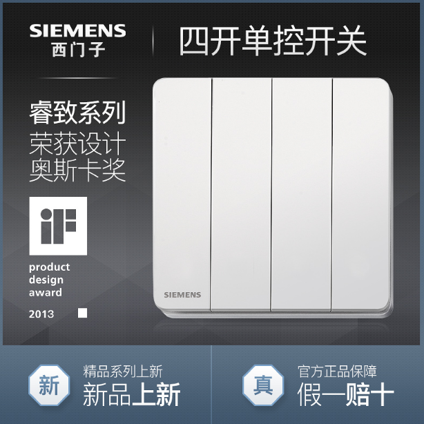 • 商品名称:西门子SIEMENS开关插座 睿致arina钛银 四开单控开关面板