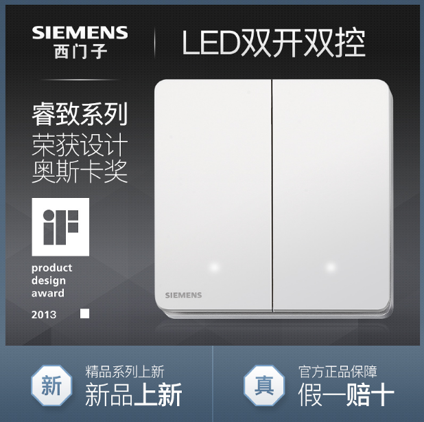 • 商品名称:西门子SIEMENS开关插座 睿致arina钛银 二开双控带LED灯开关面板