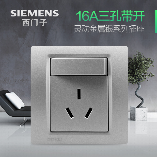 • 商品名称:西门子SIEMENS开关插座 灵动Vega金属银系列 一开单控三孔16A插座面板