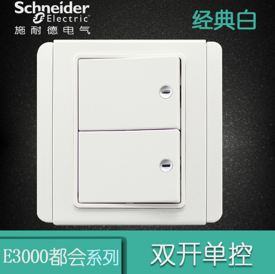 • 商品名称:施耐德Schneider开关插座 都会E3000经典白 二开单控开关面板