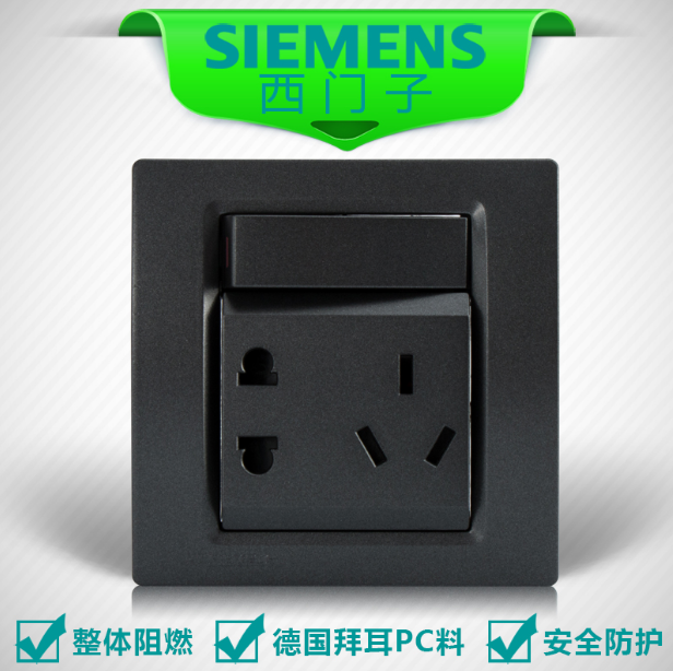 • 商品名称:西门子SIEMENS开关插座 灵动Vega金属黑系列 一开单控五孔10A插座面板