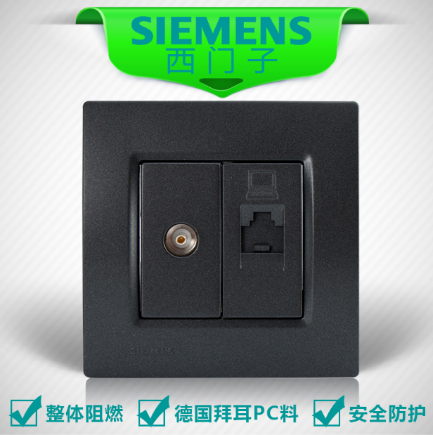• 商品名称:西门子SIEMENS开关插座 灵动Vega金属黑系列 电视+电脑插座面板