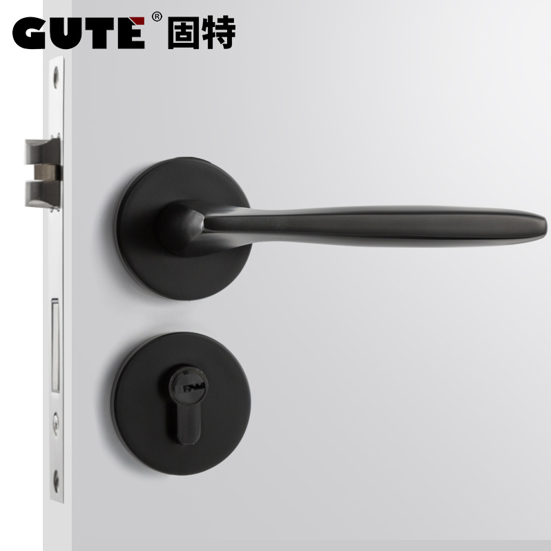 固特GUTE 铝合金门锁室内卧室房门锁美式黑色卫生间实木门把手家用静音门锁具(适合门厚38-45mm) 7202-006黑色(铝合金) 左右通用型