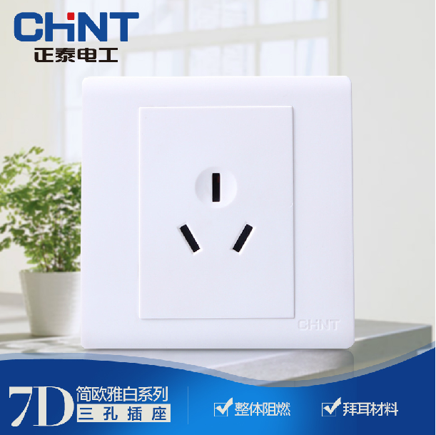 • 商品名称:正泰NEW7D雅白系列开关插座86型7D系列面板三孔10A插座面板